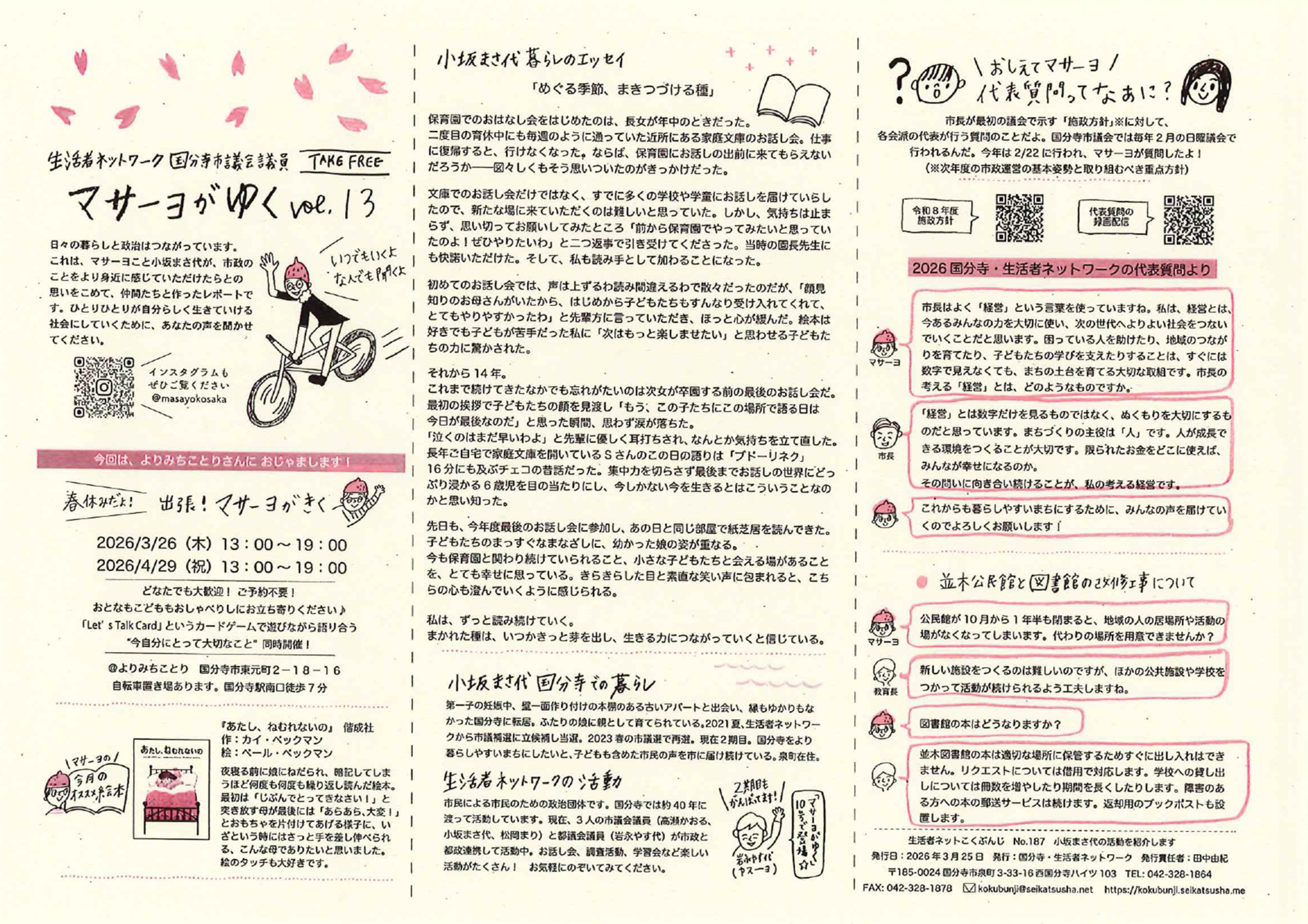 マサーヨがゆくvol.13(生活者ネットこくぶんじNo.187)を発行しました。